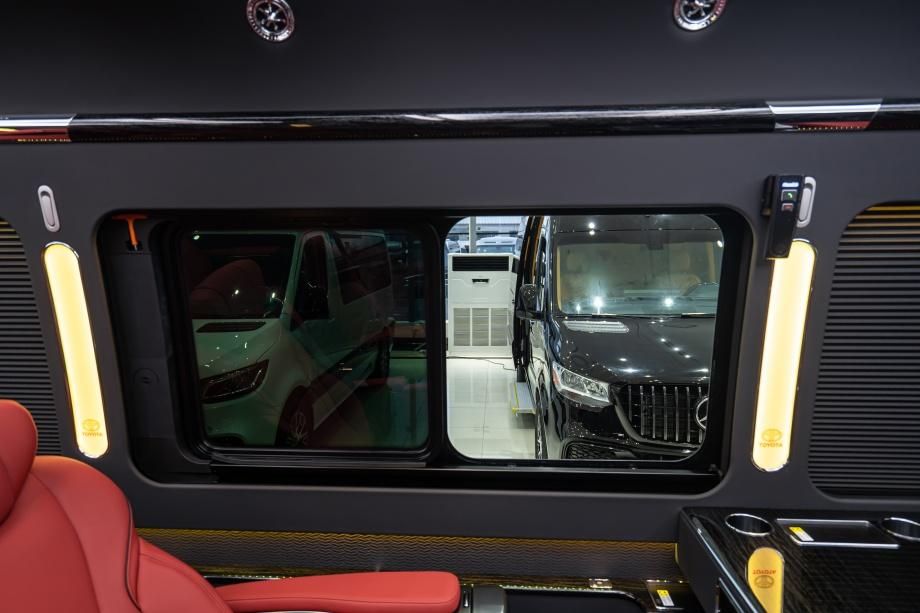 雾化中门前隔断是这款车型的一大亮点配置。隔断可实现雾化与透明状态的灵活切换,当需要私密空间时,将隔断调至雾化状态,能有效隔绝驾驶舱与乘客舱,为商务洽谈、重要会议营造出安静、私密的环境;当需要与驾驶舱沟通或观察前方路况时,切换至透明状态即可,灵活便捷,兼顾了私密性与互动性。