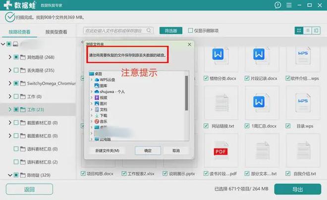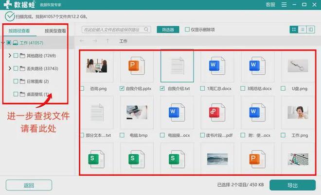 第2步:通过软件扫描出来的文件,不仅能够更为详细地分类,而且还能保留原有的目录关系,可在左侧的“目录”查看;在该页面选择合适的文件后,点击“导出”;